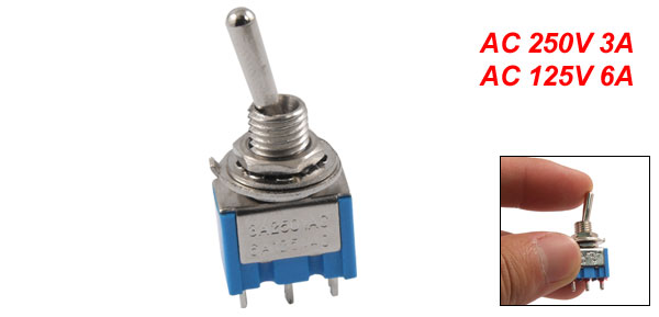 Product Name Toggle Switch Rating AC 250V 3A AC 125V 6A Pin Number 3 Pins Position 3(On/Off/On) Type SPDT Screw Diameter 5.7mm / 0.224" Total Size(Approx.) 3.3 x 1.3 x 0.75cm / 1.3" x 0.5" x 0.3"(L*W*T) Weight 5g Package Content 1 x Toggle Switch - Reviews