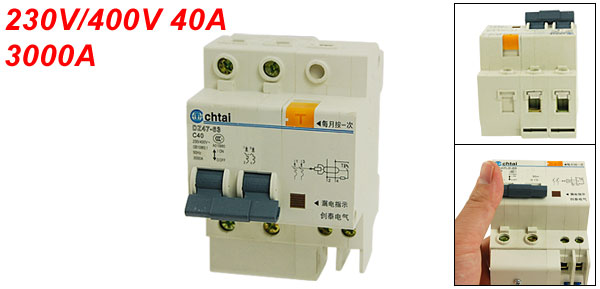 Product Name Earth Leakage Circuit Breaker Material Plastic, Electric Components Model DZ47-63 Type C40 Rated Voltage 230V/400V Rated Circuit Breaking Capacity 3000A Frequency 50Hz Rated Current 40A Total Size (Approx.) 6.5 x 6.3 x 9.3cm / 2.5" x 2.4" x 3.6" (L * W * H) Number of Poles 2 Color As Picture Shown Weight 302g Package Content 1 x Earth Leakage Circuit Breaker - Reviews