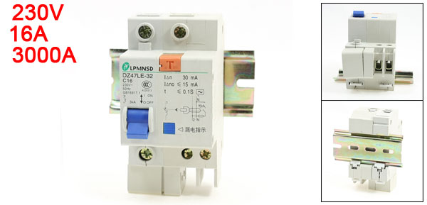 Product Name Circuit Breaker Model DZ47LE-32 C16 Rated Voltage 230V Rated Current 16A Rated Circuit Breaking Capacity 3000A Frequency 50Hz Mounting Type 35mm DIN Rail Mount Body Size (Approx.) 9 x 7 x 4.5cm/3.5" x 2.8" x 1.8"(L * W * H) Lead Rail Size 7.8 x 3.5 x 0.6cm/3.1" x 1.4" x 0.24"(L*W*H) Number of Poles 1 Material Plastic, Electric Components Color Gray, Blue Weight 185g Package Content 1 x Circuit Breaker