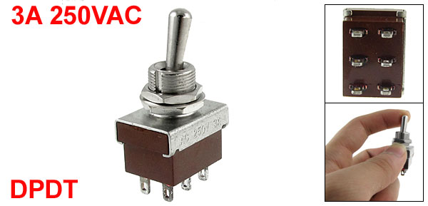 ON-ON 2 Position DPDT Toggle Switch AC 250V 3A 6 Pins New