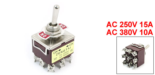 Product Name Toggle Switch Type 3PDT (Latching) Position 2 Positions (ON/ON) Voltage, Current AC 250V 15A
