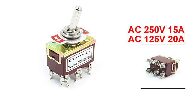 Product Name Toggle Switch Model T702BW Type DPDT (ON/ON) Position 2 Switch Latching Voltage, Current AC 250V 15A