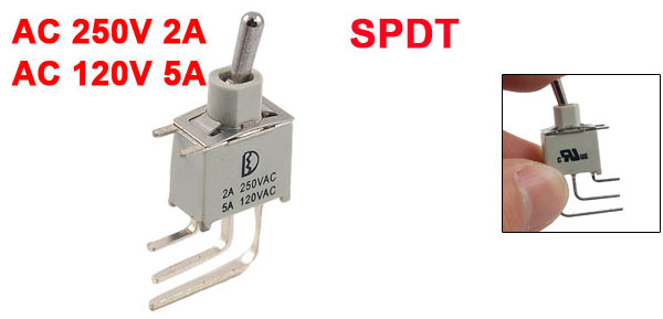 Product Name Toggle Switch Rating AC 250V 2A AC 120V 5A Pin Number 3 Pins Position 2(On/On) Type SPDT Total Size(Approx.) 3.3 x 2.8 x 0.6cm / 1.3" x 1.1" x 0.24"(L*W*T) Material Metal Color Gray Weight 3g Package Content 1 x Toggle Switch - Reviews