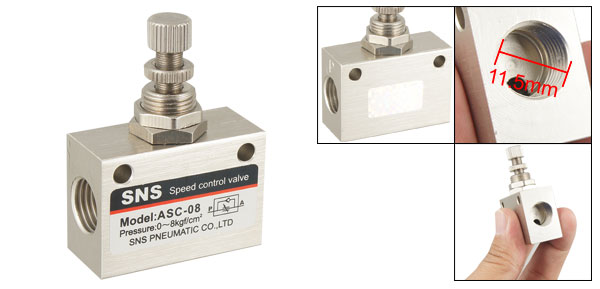 Product Name Flow Control Valve Model ASC-08 Flow Direction One Way Position Two Position Working medium Air Joint Pipe Bore Size G 0.64cm/G 1/4'' Thread Diamter 11.5mm/0.45'' Working pressure 0~0.95Mpa Working temperature 0~60 oC Total Size 4 x 1.8 x 5.3cm/1.6'' x 0.7'' x 2.1'' (L*W*H) Material Metal Color Gray Net Weight 65g Package Content 1 x Flow Control Valve - Reviews
