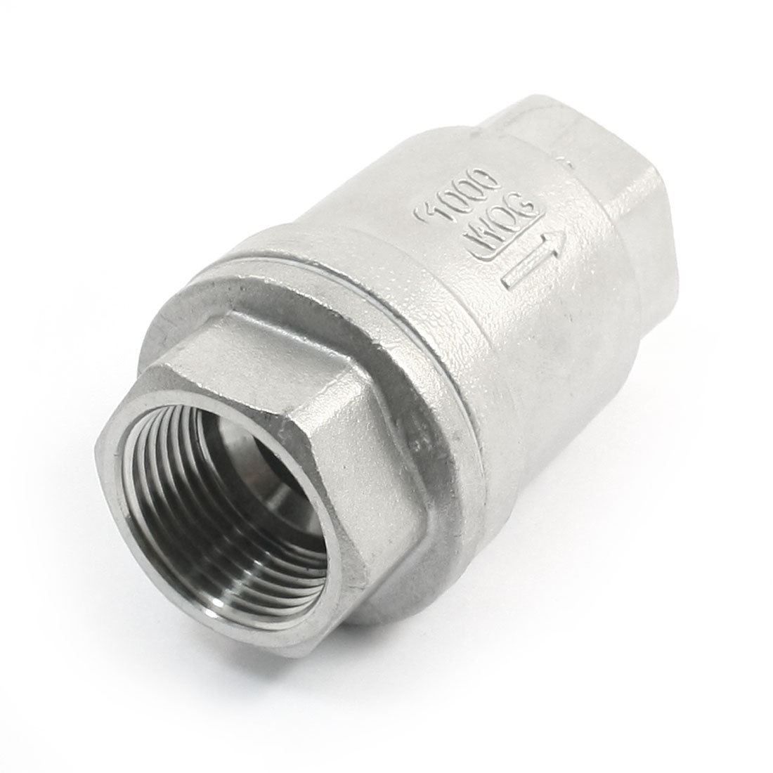 Product Name Check Valve Type Vertical Type Female Thread Diameter 24 mm / 3/4PT Thread Diameter 30 mm / 1.2" Working Pressure 1000 WOG Material Metal Medium Water Overall Size 40 x 70 mm / 1.6" x 2.8"(Max.Dia*H) Color Silver Tone Weight 281g Package Content 1 x Check Valve - Reviews