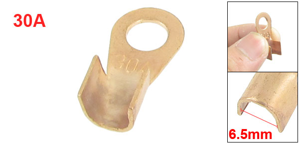 Product Name Copper Passing Through Terminal Current 30A Ring Size 6.3 x 11.6mm / 0.25" x 0.46"(Inner Dia.*OD) Cable Connector Size 6.5 x 8mm / 0.26" x 0.31"(Inner Width*Length) Overall Length 24mm / 0.94'' Material Copper Weight 3g Package Content 1 x Copper Passing Through Terminal - Reviews