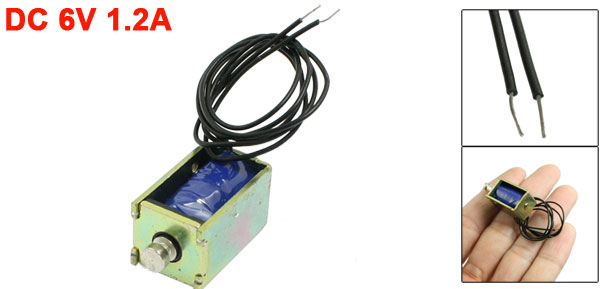 Product Name Open Frame Solenoid Material Metal, Electronic Parts Rated Voltage DC 6V Action Form Pull Type Stroke & Force 3mm, 19gf Current 1.2A Body Size 2.2 x 1.2 x 1.1cm / 0.87'' x 0.5'' x 0.4''(L*W*H) Pluger Diameter 0.4cm / 0.16'' Wire Length 18cm / 7'' Net Weight 12g Package Content 1 x Open Frame Solenoid Electromagnet - Reviews