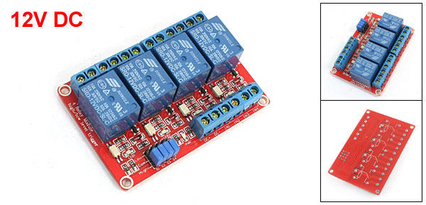 Product Name Relay Module Model SRD-12VDC-SL-C Number of Channels 4 Coil Voltage 12V DC Contact Capacity 10A, AC 250V/125V, DC 30V/28V Size 7.3 x 5 x 2cm/2.9" x 2" x 0.78"(L*W*H) Material PCB Color Red Weight 69g Package 1 x Relay Module - Reviews