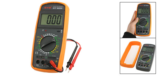 Orange Black AC DC Ohm Testing Digital Multimeter w 2 Test Leads