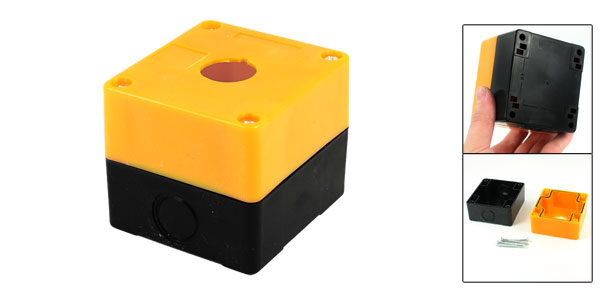 Product Name Control Box Material Plastic Color Orange, Black Location Switch Number 1 Box Total Size 75 x 70 x 65mm/3" x 2.8" x 2.6"(L*W*H) Fit for Round Switch Head Diameter 22mm/ 0.9" Net Weight 112g Package Content 1 x Control Box