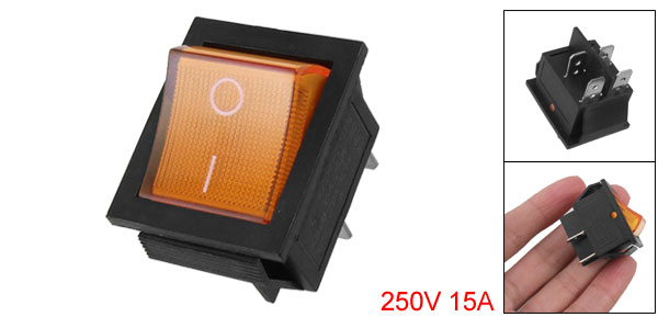 Orange Light 4 Pin DPST ON/OFF Snap in Boat Rocker Switch 15A 250V AC 29x1mm