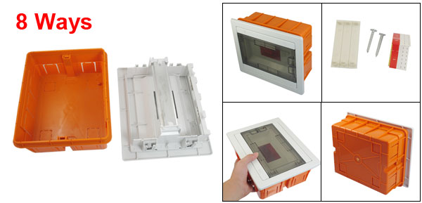 Product Name Power Distribution Box Material Plastic, Metal Ways 8 Color Orange Screw Size 26 x 3.5mm/1.02" x 0.14"(L*Dia.) Guiding Rail Size 7 x 3.5cm/ 5.9" x 1.38"(L*W) Open Hole Size 7 x 4.5cm/ 2.76" x 1.77"(L*W) Cover Size 19.5 x 11.5cm/ 7.7" x 4.5"(L*W) Overall Size 23.6 x 19.4 x 10cm/ 9.3" x 7.6" x 3.9" (L*W*T) Net Weight 550g Package Content 1 x Power Distribution Box