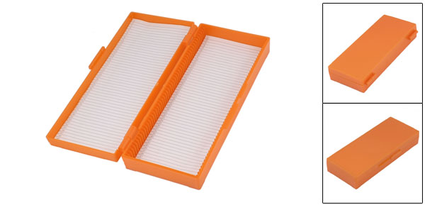 Product Name Microscope Slide Box Shell Color Orange Material Plastic Can Hold Slide Number 50 Pcs Slot Number 50 Fit Slide Size 7.6 x 1.4cm/3" x 1"(L*W) Total Size 19.7 x 8 x 3.2cm/7.8" x 3.1" x 1.3"(L*W*T) Weight 108g Package 1 x Microscope Slide Box - Reviews