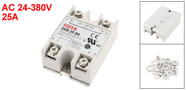 Main Color Gray, Silver Tone Input DC 3-32V Rated Load Current 25A Brand DMiotech Net Weight 109g Country of Manufacture CHINA Model SSR-25DA Package Content 1 x Solid State Relay Total Size (Approx.) 6.3 x 4.5 x 2.5cm/ 2.5" x 1.8" x 1"(L*W*T) Material Plastic, Electric Part Output AC 24-380V - Reviews