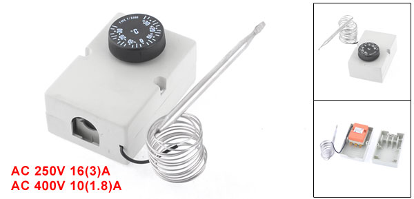 Product Name Capillary Thermostat Use for Any Electrical Device Which Need Temperature Control Action Type NC(Normal Close) Control Temerature -30 to +30 celsius Material Plastic, Resion, Metal Power AC 250V 16(3)A