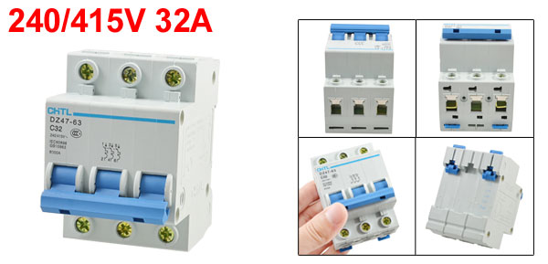 Product Name Circuit Breaker Model No. DZ47-63 C32 Material Plastic, Electric Components Rated Voltage 240 / 415V Rated Current 32A Breaking Capacity 6000A Frequency 50/60Hz Total Size (Approx.) 77 x 54 x 65mm/ 3" x 2.1" x 2.6" (L*W*H) Number of Poles 3 Mount Type DIN Rail Color As Picture Shown Weight 259g Package Content 1 x Circuit Breaker - Reviews