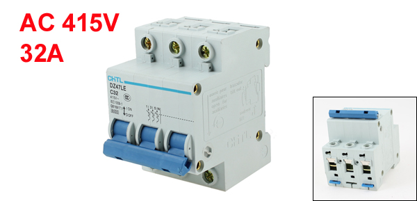 Product Name Circuit Breaker Model No. DZ47LE C32 Material Plastic, Electric Components Main Color Gray, Blue Rated Voltage AC 415V Rated Current 32A Breaking Capacity 6000A Total Size (Approx.) 7.5 x 5.1 x 6.5cm / 3" x 2" x 2.6"(L*W*H) Number of Poles 3 Mount Type DIN Rail Weight 249g Package Content 1 x Circuit Breaker - Reviews