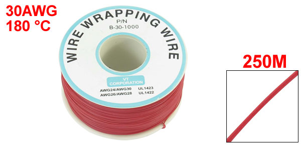Product Name Wrapping Wire Model P/N B-30-1000 UL1423 Type 30AWG Wire Size 0.5 x 0.25mm / 0.02" x 0.01"(OD*Core Dia.) Cable Length(Approx.) 250M / 820Ft Temperature Rating 180 °C Reel Size 7 x 3.3cm/ 2.76" x 1.3"(D*H) Material Plastic, PVC, Tin Plated Copper External Color Red, White Weight 192g Package 1 x Wrapping Wire - Reviews
