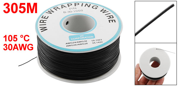 Product Name Wrapping Wire Model P/N B-30-1000 Type 30AWG Wire Size 0.5 x 0.25mm / 0.019" x 0.009"(OD*Wire Dia.) Cable Length(Approx.) 305M / 1000Ft Temperature Rating 105 °C Reel Size 7 x 3.3cm/ 2.7" x 1.3"(D*H) Material Plastic, PVC, Tin Plated Copper External Color Black, White Weight 153g Package 1 x Wrapping Wire - Reviews