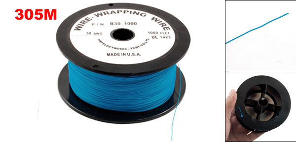 P/N B30-1000 Blue Insulated PVC Coated 30AWG Wire Wrapping Wires Reel 305M