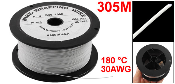 Product Name Wrapping Wire Model P/N B30-1000 UL1423 Type 30AWG Wire Size 0.5 x 0.25mm / 0.019" x 0.009"(OD*Core Dia.) Cable Length(Approx.) 305M / 1000Ft Temperature Rating 180 °C Reel Size 10 x 4.5cm/ 3.9" x 1.8"(D*H) Material Plastic, PVC, Tin Plated Copper External Color Black, White Weight 222g Package 1 x Wrapping Wire - Reviews