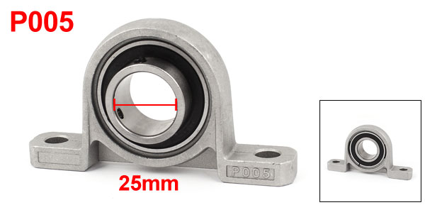 P005 25mm Mounted Self Align Pillow Block Bearing Solid Base Iron Housing Gray