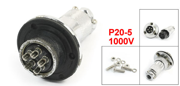 Product Name Aviation Connector Plug Core Type P20-5 Core Contacts Pin Number 5 Contacts Pin Diameter 3mm Withstand Voltage 1000V Insulator Resistance >1000MΩ Contact Resistance <3MΩ Tube Hole Diameter 7.5mm/ 0.3" Base Diameter 20mm/ 0.8" Mounting Type Round Flange Assemble Total Size 3.3 x 5.6cm/1.3" x 2.2"(D*L) Mouting Hole Dia 4mm/ 0.16" External Material Stainless Steel Weight 50g Package 1 x Aviation Connector Plug