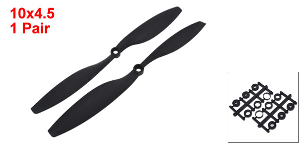 DetailsPair 2 Blades 10x4.5 Black Carton Nylon CW CCW RC Model Airplane Prop Propeller  Product Name 1045 Propeller Blade Number 2 Model 10x4.5(Non-OEM) Motor Shaft Hole Dia 6mm / 0.24", 9.3mm/ 0.37"(Contary) Total Length(Rotating Diameter) 254mm / 10" Pitch 114mm / 4.5" Max Thickness 8mm / 0.31" Shaft Size Adapter Ring Inner Dia Biggest: 7.95mm/0.31" Smallest: 3.2mm/0.13" Material Carbon Nylon Color Black Weight 20g Package Content Pair x Propellers 12 x Shaft Size Adapter Ring