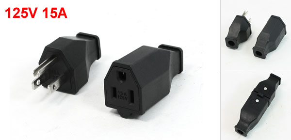 Pair 3 Pin US Plug Insulating Shell Cable Connecting Head 15A 125V w Socket