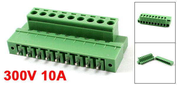Product Name Plmiuggable Ternal Block Model 2EDGKM Type Single Rows, 9 Pins Pin Pith 5.08mm Rated Voltage 300V 10A Total Size 5.7 x 2.3 x 1.5cm/ 2.2" x 0.9" x 0.6"(L*W*H) Material Metal, Plastic Color Green Weight 19g Package Content Pair x Terminal Block - Reviews