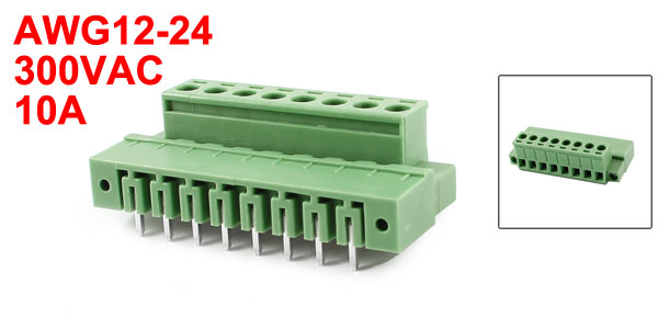 Pair AC 300V 10A 5.08mm Spacing 8 Pin Screw Pluggable Terminal Block