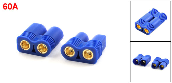 Product Name EC3 Battery Connector Fit for ESC LiPo Battery Motor Rate Current 60A Type Male to Female Plug Type 3.5mm Bullet Connector Total Size 1.6 x 1.6 x 0.8cm/0.64" x 0.64" x 0.3"(L*W*T) Materials Plastic, Metal Main Color Blue, Gold Tone Net Weigth 4g Package Content Pair x EC3 Battery Connector