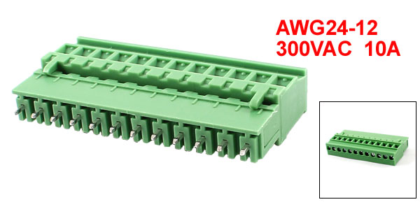 Product Name Block Terminal Connectors Model 2EDGKA 5.08 12P Fit Cable Model AWG24-12 Spacing 5.08mm Pole Numbers 12 Pin Rated Voltage 300VAC Rated Current 10A Board Size 60 x 30 x 10mm/2.4" x 1.2" x 0.4"(L*W*H)