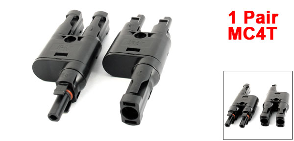 Product Name Solar Panels Connector Model MC4T Type Male to Female Rate Current DC 1000V Protector Level IP67 Material PA/PC Certifications TUV Size 110 x 40 x 18mm/ 4.3" x 1.6" x 0.7"(L*W*H) Color Black Net Weight 120g Package Content Pair x Solar Panels Connector - Reviews