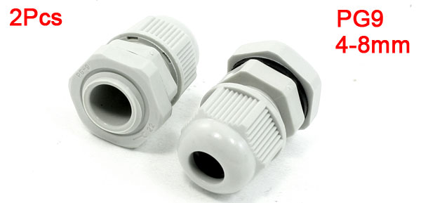 Product Name Cable Gland Model PG9 Cable Range 4-8mm / 0.16" x 0.315" Thread O.D. 16mm / 0.6" Thread Length 7mm / 0.28" Total Size 2.4 x 3.5cm / 0.95" x 1.4" (D*H) Material Plastic Color Graywhite Weight 18g Package Content 2 x Cable Glands - Reviews