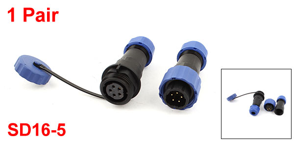 Pair Waterproof Aviation Cable Connector Plug + Socket SD16-5 5 Pin IP68