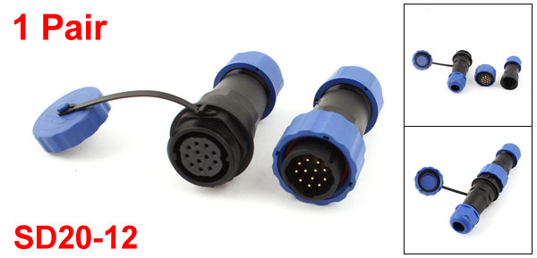 Pair Waterproof Aviation Cable Connector Plug + Socket SD20-12 12 Pin IP68