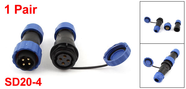 Pair Waterproof Aviation Cable Connector Plug + Socket SD20-4 4 Pin IP68