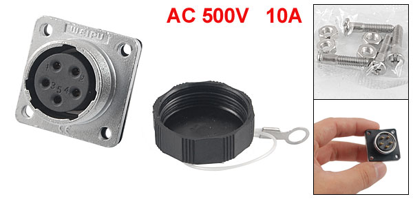 Product Name Chassis Mount Connector Model WS20-5 Working Voltage AC 500V Rated Current 10A Withstand Voltage AC 1500V Contact Resistance 2.5 MOhm Insulator Resistance 2000 MOhm Contacts Pin Number 5 Contacts Pin Diameter 1.5mm/0.06'' Thread Dia. 20.8mm/0.81'' Screw Mount Dia. 3mm/0.12'' Overall Size 29 x 29 x26mm/1.14'' x 1.14'' x 1.02''(L*W*H)