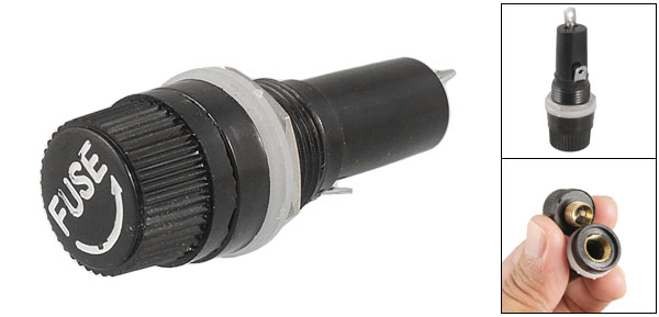 Item Name Panel Mounted Fuse Holder Fit for 6 x 30mm / 0.236" x 1.181" Fuses Material Plastic and Metal Color Black, Silver Tone Size 15 x 52mm/ 0.6" x 2" (Max.D*L) Net Weight 10g Package Content 1 x Panel Mount Fuse Holder - Reviews