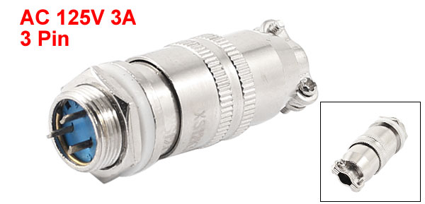 Product Name Aviation Connector Plug Model XS12-3 Max Voltage AC 125V Max Current 3A Withstand Voltage AC 1500V Pin Quantity 3 Pin Mounting Thread Diameter 12mm / 0.47" Total Length 45mm/ 1.8" Material Metal Color Silver Tone Weight 23g Package 1 x Aviation Connector Plug - Reviews