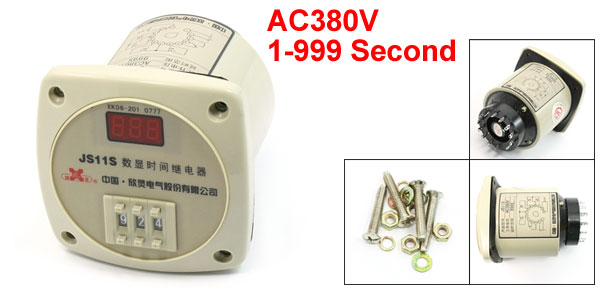 Product Name Time Relay Model JS11S Working Voltage AC380V Time Range 1-999 Second Total Size (Approx.) 9.4 x 9.5 x 12cm/3.7" x 3.7" x 4.7" (L*W*H) Color As Picture Shown Weight 486g Package Content 1 x Time Relay - Reviews