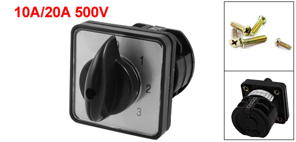 Product Name Changeover Switch Model LW28-20/0-3.2 Voltage & Current 10A/20A 500V Ue 660V Ith 20A Position Number 3 Terminal Number 6 Installing Holes Dia(Approx) 3.5mm / 0.14" Installing Holes Center Distance(Approx) 3.7 x 3.7cm/1.5" x 1.5"(L*W) Overall Size(Approx) 5 x 5 x 6cm/2" x 2" x 2.4"(L*W*H) External Material Plastic, Metal Weight 79g Package Content 1 x Changeover Switch - Reviews