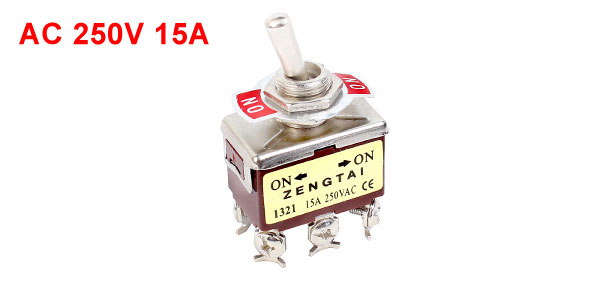 DetailsPanel Mount 3PDT ON/ON 6 Screw Terminals Toggle Switch AC 250V 15A  Product Name Toggle Switch Type 3PDT (ON/ON) Position 2 Switch Locking Voltage, Current AC 250V 15A Mounting Thread Diameter 12 mm / 0.47" Main Body Size 3 x 2 x 2 cm / 1.2" x 0.8" x 0.8" (L*W*H) Overall Height 5.6 cm / 2.2" Net Weight 35g Package Content 1 x Toggle Switch