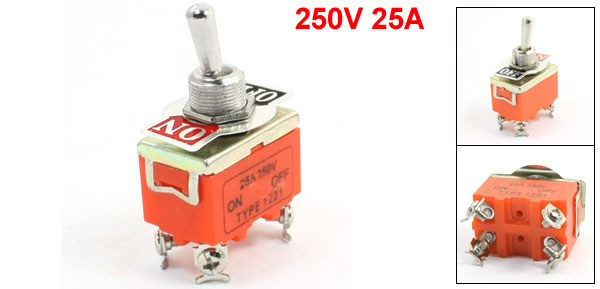 Product Name Toggle Switch Type DPST (ON/OFF) Position 2 Voltage 250V Current 25A Mounting Thread Diamter 12mm / 0.5" Main Body Size 50 x 34 x 24mm/2" x 1.4" x 0.95"(L*W*H) Overall Height 57mm / 2.2" Material Metal, Plastic Main Color Silver Tone, Orange Net Weight 33g Package Content 1 x Toggle Switch - Reviews