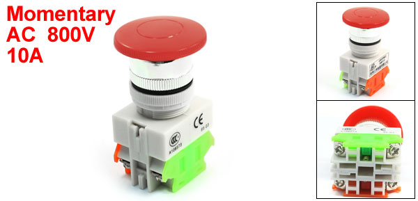 Product Name Mushroom Push Button Switch Model LAY37 Action Type Momentary Contact Type 1NO, 1NC(DPST) Ith 10A Ui AC 800V Terminal Number 4 Screw Terminals Button Diameter (Approx.) 4cm / 1.6" Mounting Diameter 24mm / 0.94" Mounting Length 35mm/1.5" Overall Size(Approx.) 7.3 x 4 x 4cm/2.8" x 1.6" x 1.6"(L*W*H) Main Color Silver Tone, Red, White Material Plastic, Metal Net Weight 38g Package Content 1 x Mushroom Push Button Switch - Reviews