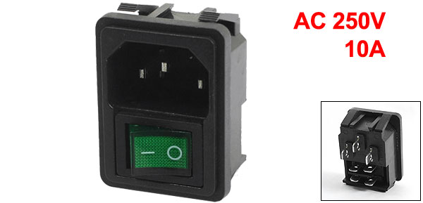 Product Name Male Power Plug w Rocker Switch Model SS-8B-2 Power Supply AC 250V 10A Inlet Plug Type IEC320 C14 Terminals Number 3 Rocker Switch Type DPST Button Light Color Green Total Size(Approx) 4.1 x 3.1 x 3cm /1.6" x 1.2" x 1.2"(L*W*T) Mouting Size 40 x 27mm/1.6" x 1.1"(L*W) Material Plastic,Electronic Parts Color Black , Green Weight 217g Package Content 1 x Male Power Plug + Fuse Holer w Rocker Switch - Reviews