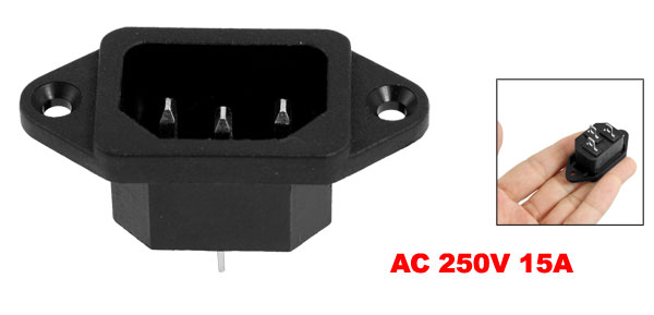 Product Name Power Socket Material Plastic, Metal Color Black, Silver Tone Power Supply AC 250V 15A Plug Type 3 Pin IEC320 C14 Terminals Quantity 3 Mounting Size 4.6 x 2.2cm / 1.87" x 0.87" (L*W) Total Size 3.1 x 2.4 x 2.7cm / 1.2" x 0.9" x 1" (L*W*T) Weight 11g Package Content 1 x Power Socket