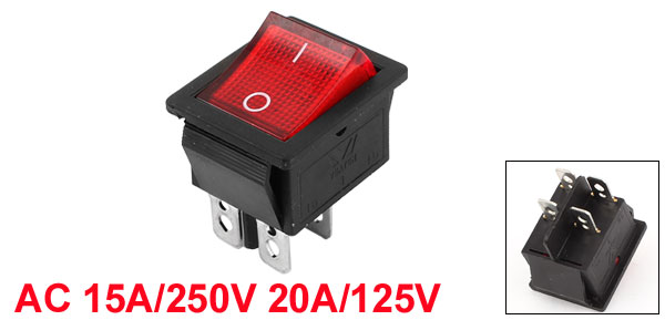 Panel Mount KCD4 DPST 4Pin I/O Rocker Switch Red Light AC 15A/250V 20A/125V