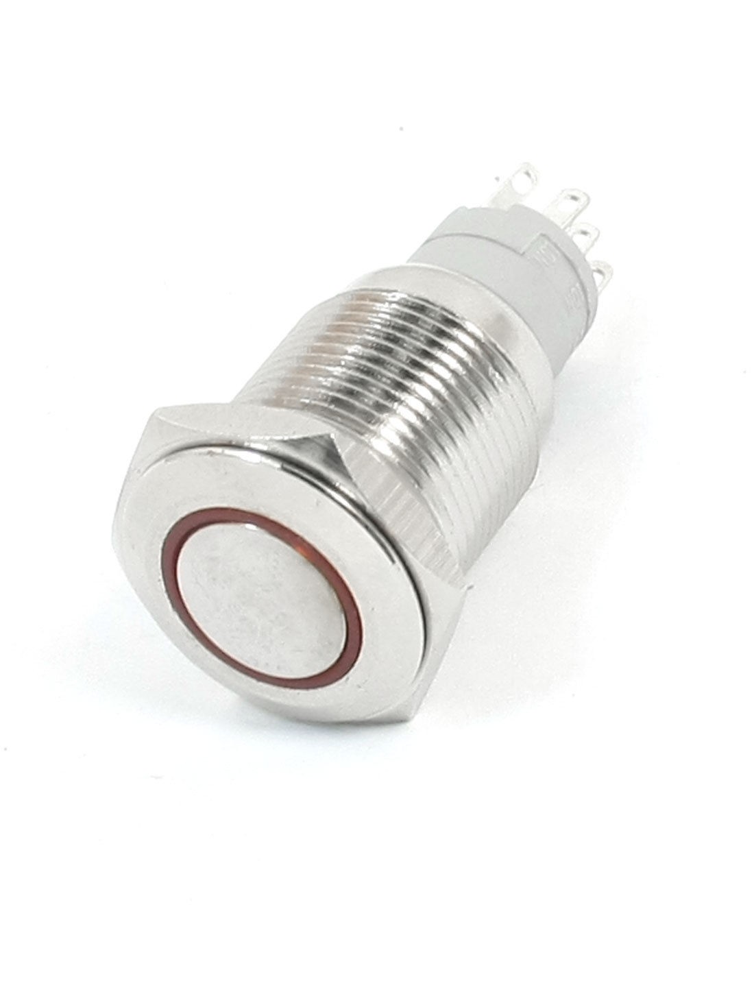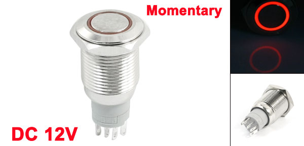 DetailsPanel Mount Red Indicator LED SPDT Locking Metal Push Button Switch 16mm  Item Name Push Button Switch Action Type Momentary Type LED Type Angel Eye Head Shape Flat Head Contact 1NO 1NC, SPDT Switch Rating AC 250V, 3A Lamp Voltage DC 12V LED Color Red Pin Number 5 Thread Diameter 16mm/0.63" Total Size 38 x 19mm/1.5" x 0.75"(L*Max.W) Material Metal, Plastic, Electric Parts Housing Color Silver Tone, Red Net Weight 15g Package Content 1 x Push Button Switch